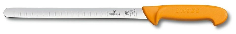 Нож для нарезки лосося VICTORINOX Swibo, гибкое лезвие 25 см с желобками, жёлтый