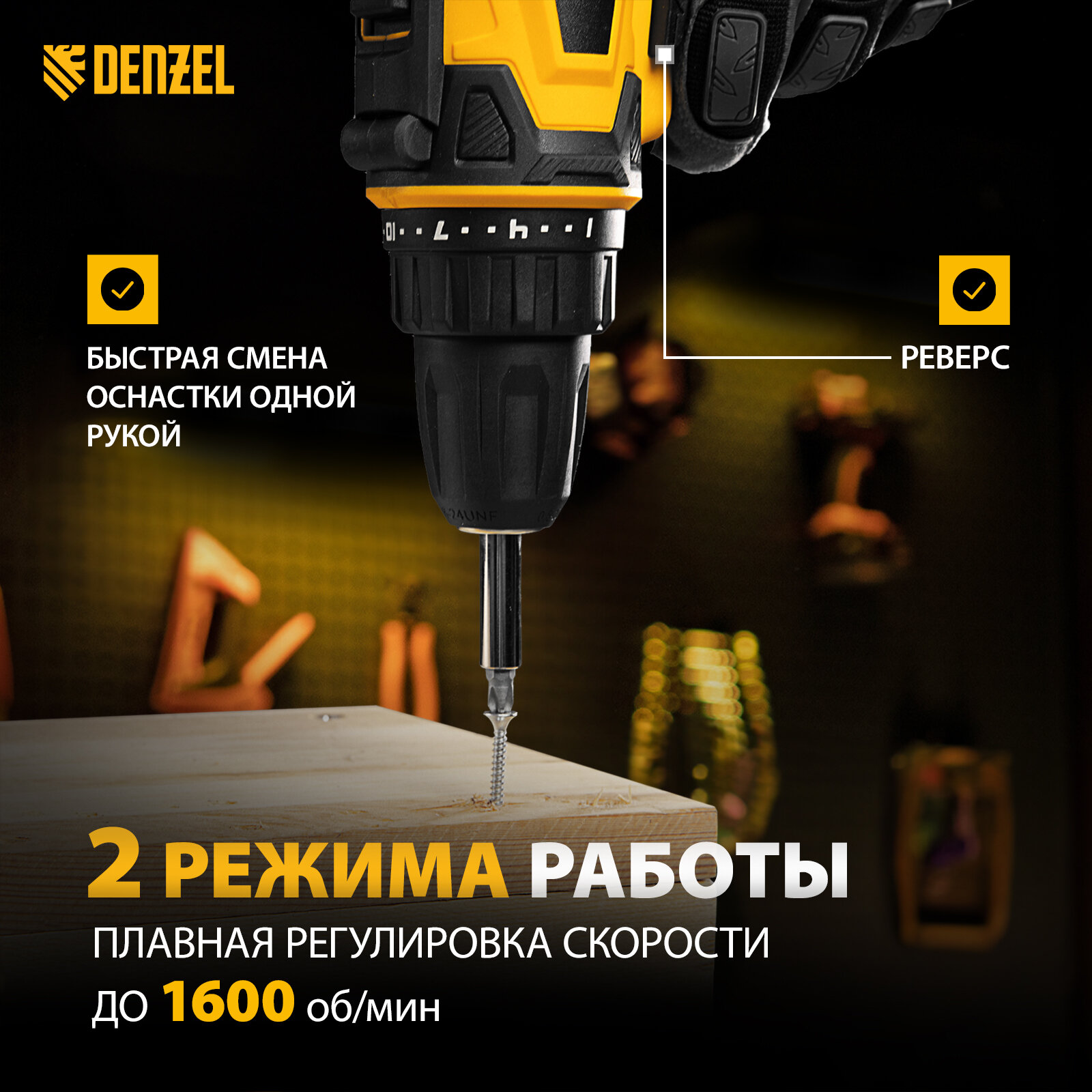 Дрель-шуруповерт аккумуляторная CDL-18-0, Li-Ion, 18 В Denzel