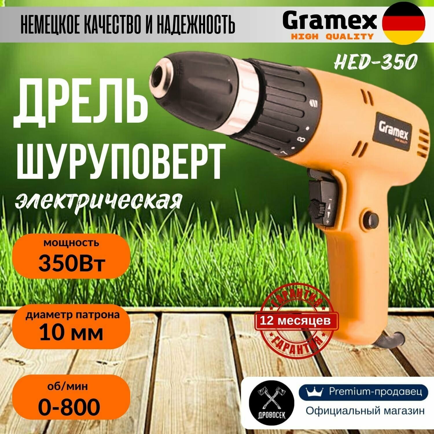 10 цен на Дрель-шуруповерт Gramex HED-350 электрическая (сетевая) с двумя режимами работы: дрель и шуруповерт, в подарок - бита WirlPower PH2, 50мм