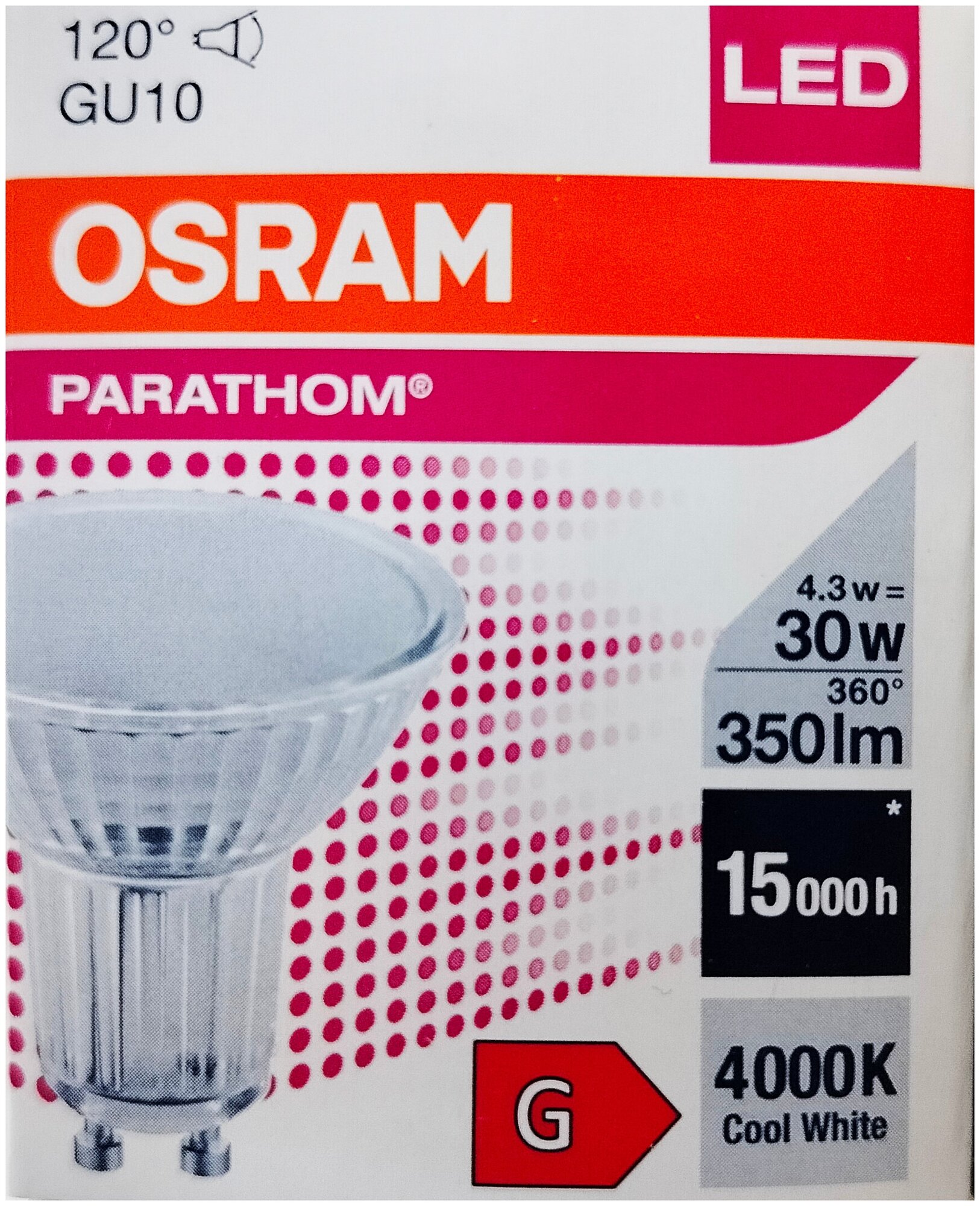 Отзывы на Лампа светодиодная OSRAM 4.3Вт GU10 PAR16 Софит 2-PARATHOM угол 120° 220В, 4000К 350Лм Нейтральный белый, уп. 10шт
