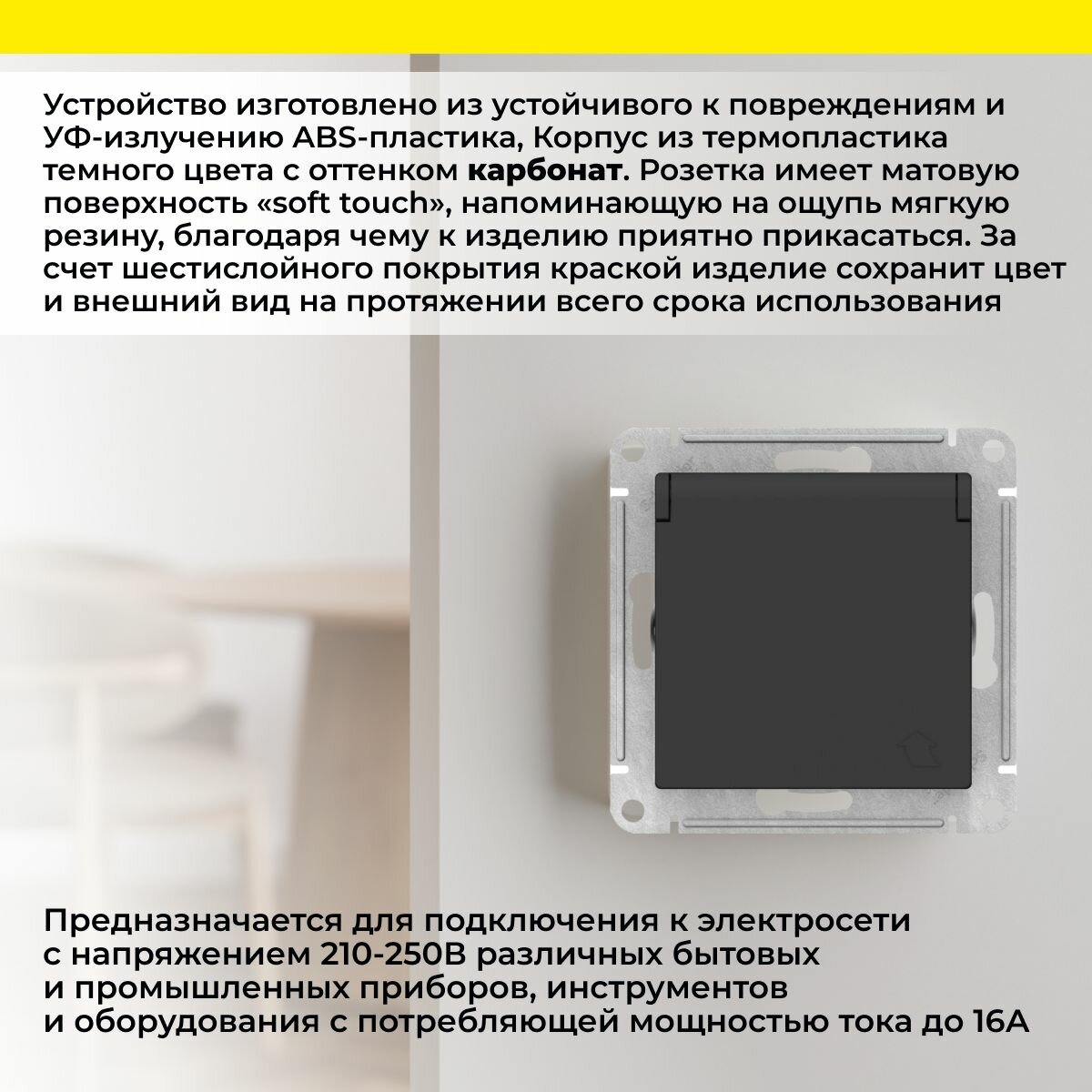 SE AtlasDesign Карбон Розетка с/з, со шторками, с крышкой, 16А информация: