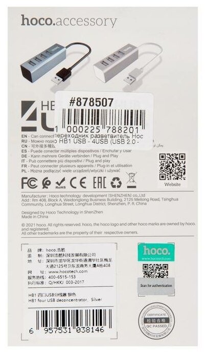 Отзывы на USB HUB разветвитель HOCO HB1 4 в 1 USB2.0 (m) - 4xUSB2.0 (f), 80 см, тусклый