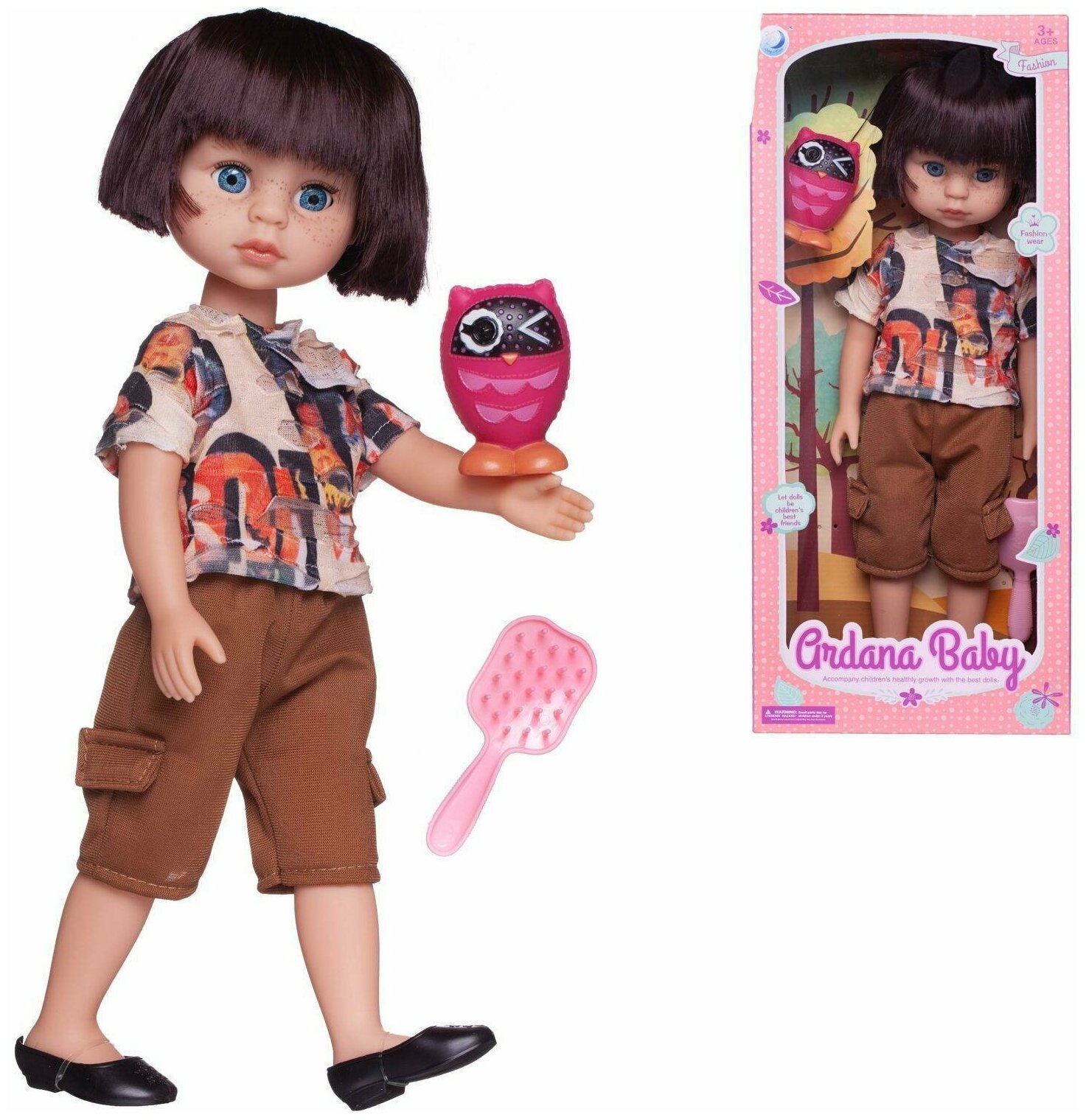 Кукла Junfa шатенка с короткими волосами с совенком 37,5 см (WJ-19265/шатенка) информация: