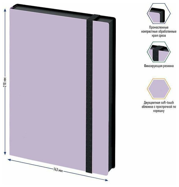 Комплект 2 шт, Ежедневник недатированный, А5, 136л, кожзам, Berlingo "Instinct", черный/лаванда, с резинкой 2 002 ₽