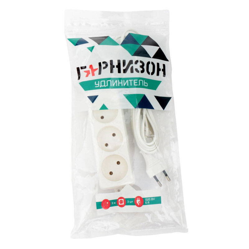Удлинитель Гарнизон EL-E3-W-3, 3 розетки, б/з, 6А / 1300 Вт белый 3 м 0.75 м² 3