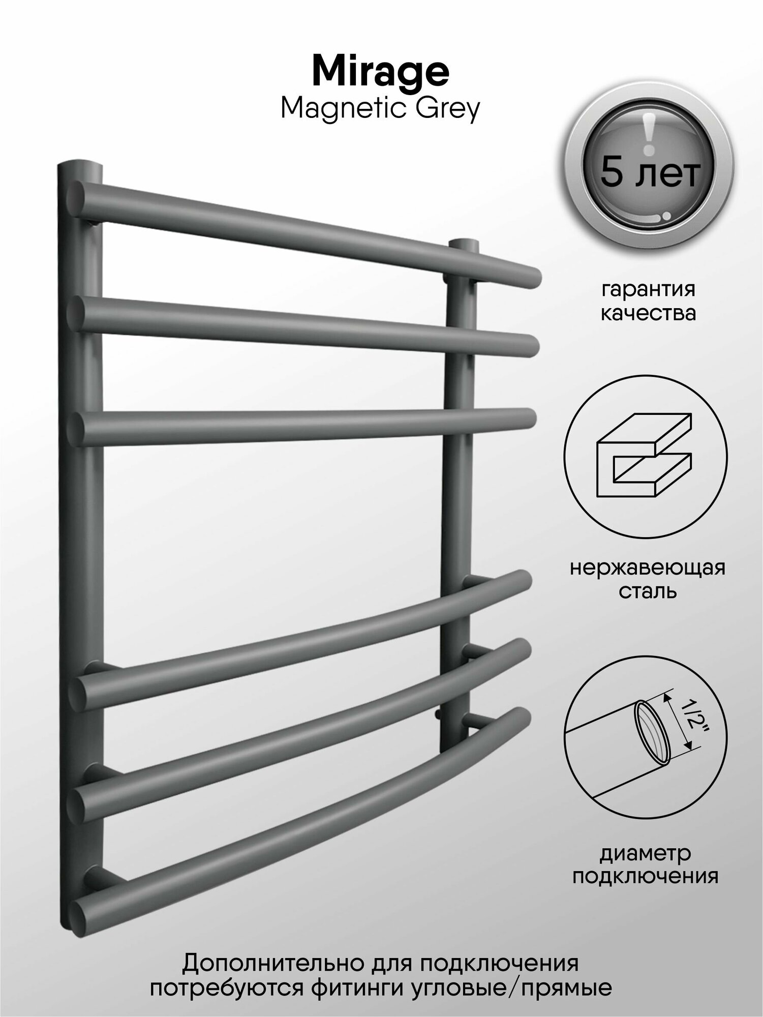 Полотенцесушитель водяной INDIGO Mirage 60/50 Magnetic Grey информация: