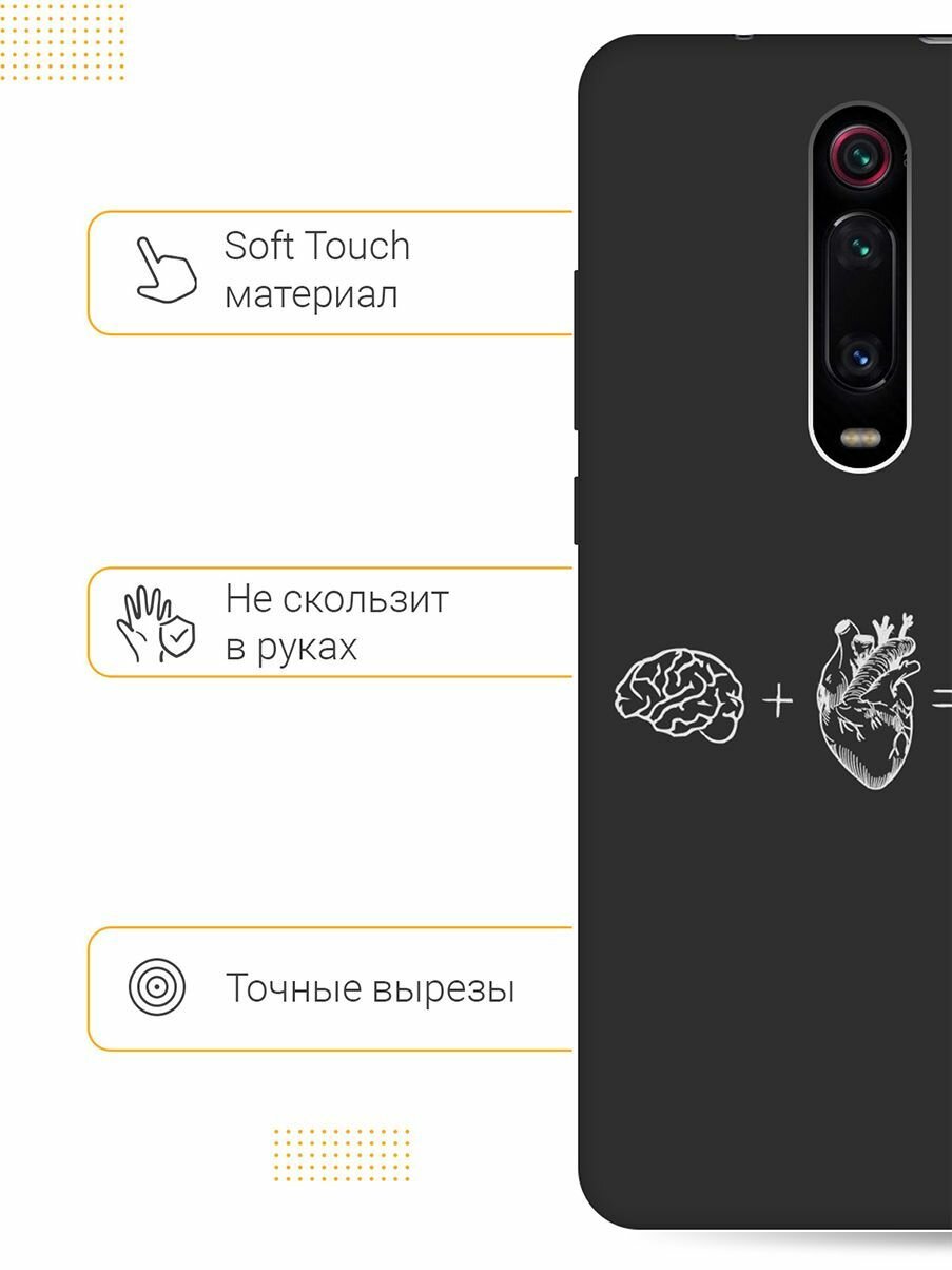 Матовый Soft Touch силиконовый чехол на Xiaomi Mi 9T, Mi 9T Pro, K20, K20 Pro, Сяоми Ми 9Т, Ми 9Т Про с 3D принтом "Brain Plus Heart W" черный информация: