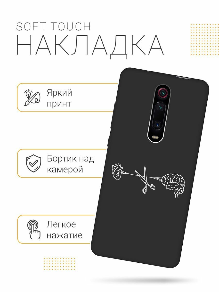 Матовый Soft Touch силиконовый чехол на Xiaomi Mi 9T, Mi 9T Pro, K20, K20 Pro, Сяоми Ми 9Т, Ми 9Т Про с 3D принтом "Brain Plus Heart W" черный 513 ₽