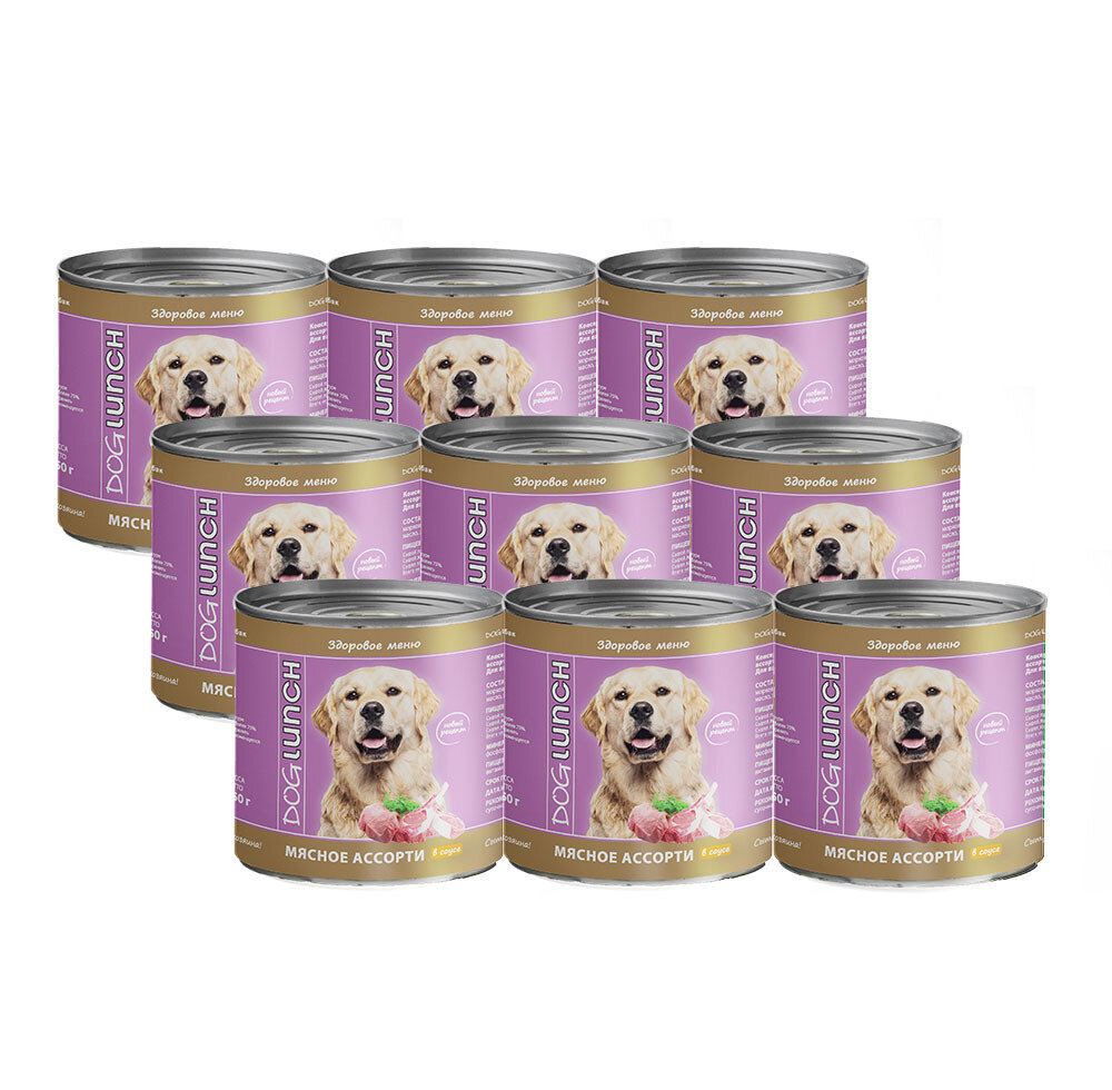Консервы для собак DOGLUNCH Мясное ассорти в соусе 750 г х 9шт информация: