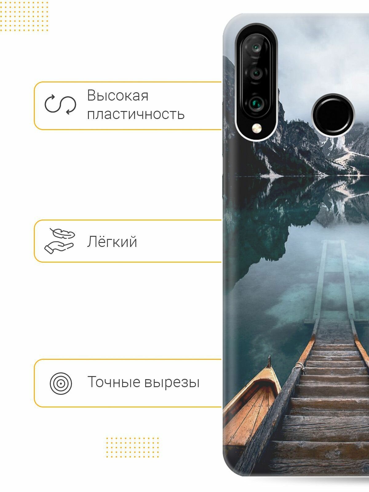 Отзывы на Силиконовый чехол на Honor 20 Lite, 20s, Huawei P30 Lite, Хуавей П30 Лайт, Хонор 20 Лайт, 20s с принтом "Горы, озеро, облака"