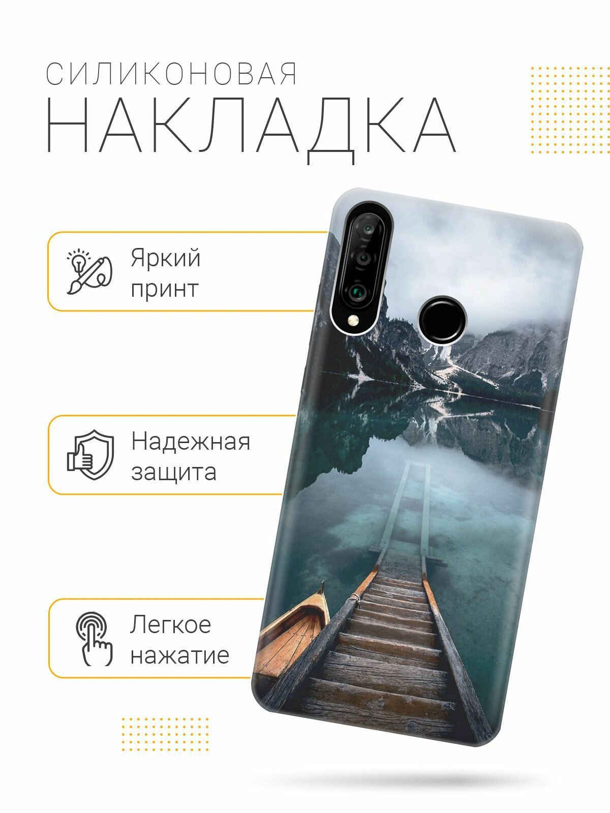 10 цен на Силиконовый чехол на Honor 20 Lite, 20s, Huawei P30 Lite, Хуавей П30 Лайт, Хонор 20 Лайт, 20s с принтом "Горы, озеро, облака"