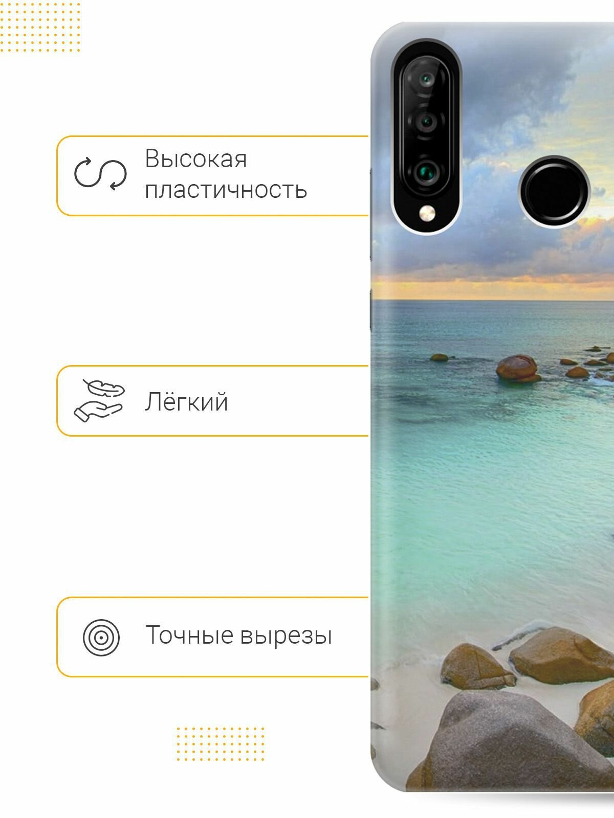 Силиконовый чехол на Honor 20 Lite, 20s, Huawei P30 Lite, Хуавей П30 Лайт, Хонор 20 Лайт, 20s с принтом "Каменистый пляж" информация: