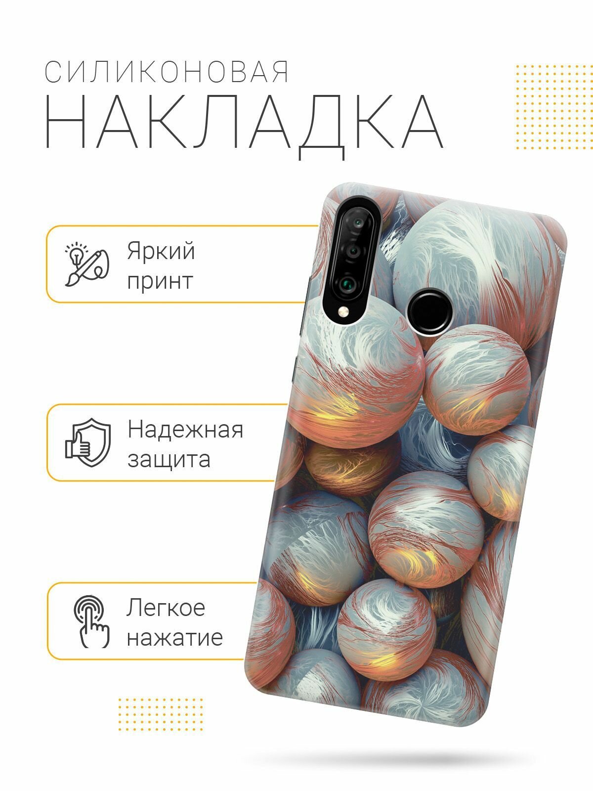 10 цен на Силиконовый чехол на Honor 20 Lite, 20s, Huawei P30 Lite, Хуавей П30 Лайт, Хонор 20 Лайт, 20s с принтом "Серо-красные шары"
