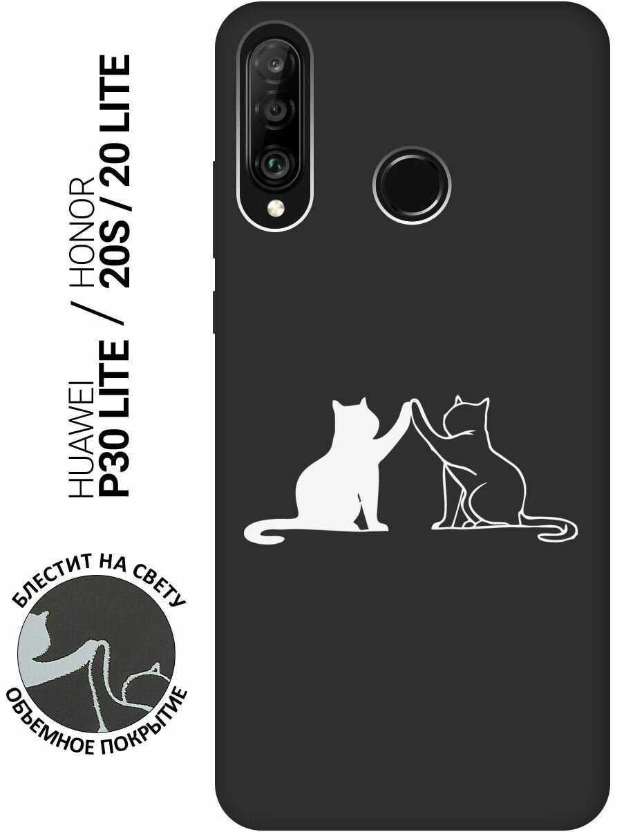 Матовый Soft Touch силиконовый чехол на Honor 20 Lite, 20s, Huawei P30 Lite, Хуавей П30 Лайт, Хонор 20 Лайт, 20s с 3D принтом "Cats W" черный информация: