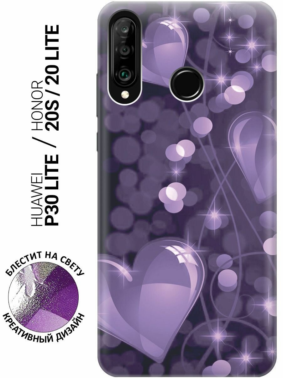 Силиконовый чехол на Honor 20 Lite, 20s, Huawei P30 Lite, Хуавей П30 Лайт, Хонор 20 Лайт, 20s с эффектом блеска "Любовь в фиолетовом цвете" информация: