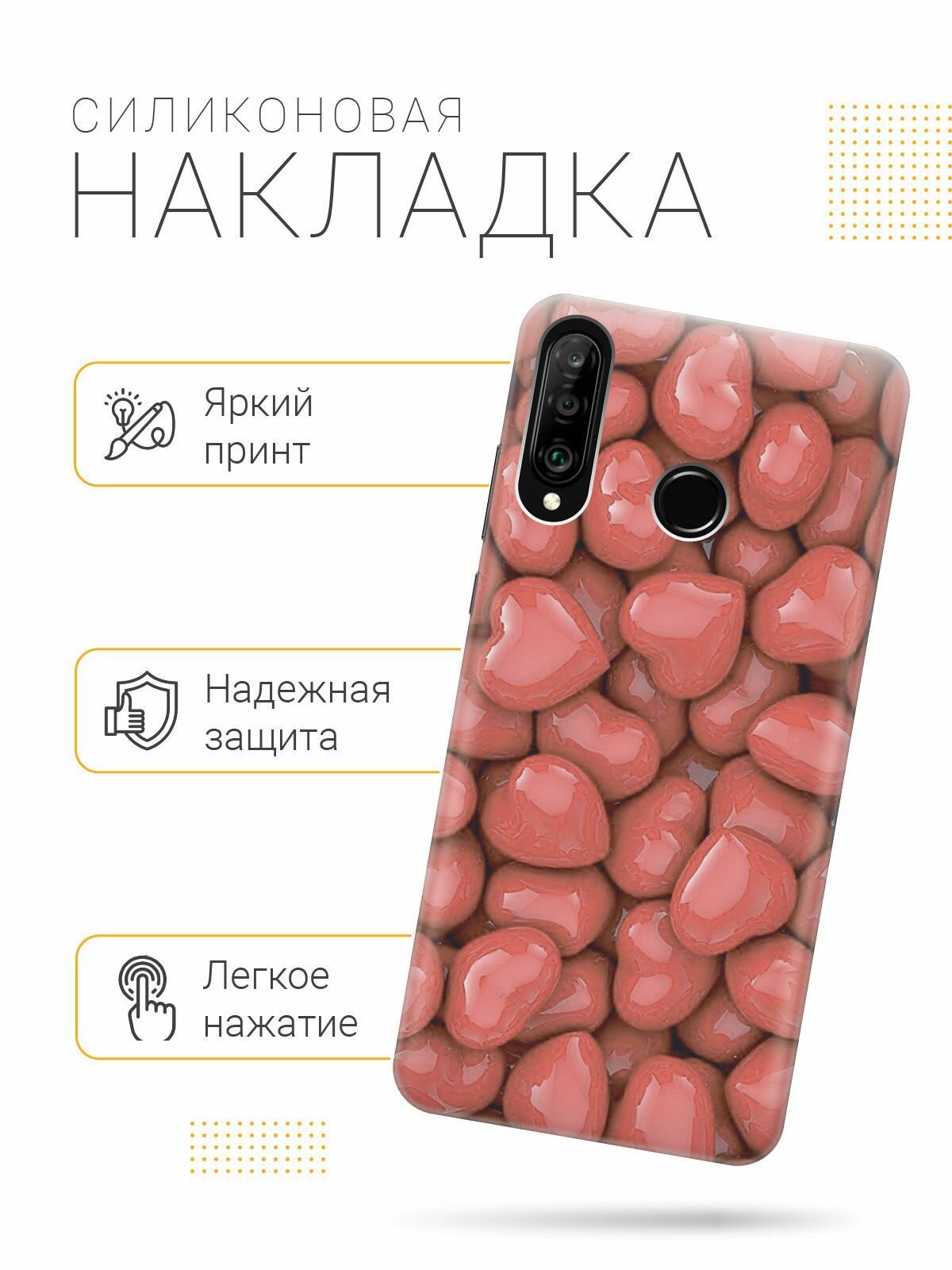 Силиконовый чехол на Honor 20 Lite, 20s, Huawei P30 Lite, Хуавей П30 Лайт, Хонор 20 Лайт, 20s с эффектом блеска "Красные сердечки" информация: