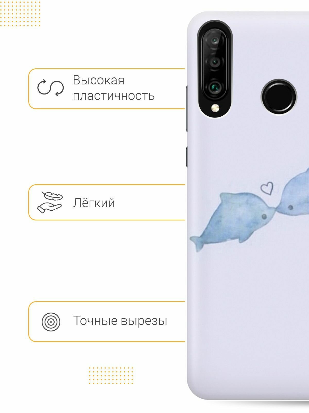 10 цен на Силиконовый чехол на Honor 20 Lite, 20s, Huawei P30 Lite, Хуавей П30 Лайт, Хонор 20 Лайт, 20s с принтом "Дельфинчики"