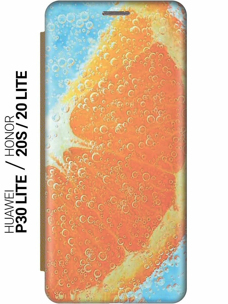 Чехол-книжка на Honor 20 Lite, 20s, Huawei P30 Lite, Хуавей П30 Лайт, Хонор 20 Лайт, 20s c принтом "Долька апельсина" золотистый информация: