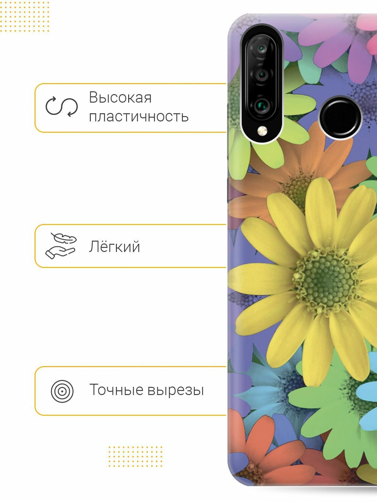 10 цен на Силиконовый чехол на Huawei P30 Lite, Honor 20 Lite, Honor 20s, Хуавей П30 Лайт, Хонор 20 Лайт, Хонор 20s с принтом "Букет из разнозветных ромашек"