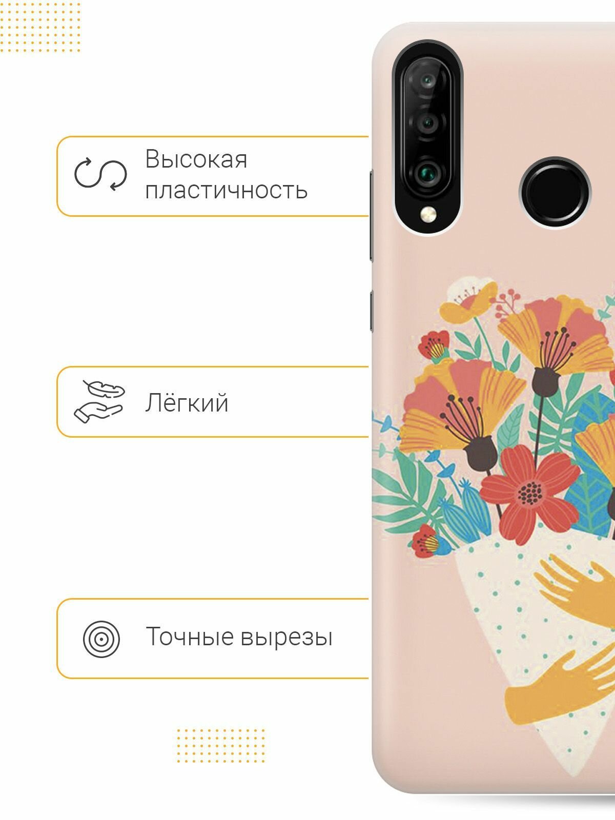 Отзывы на Силиконовый чехол на Honor 20 Lite, 20s, Huawei P30 Lite, Хуавей П30 Лайт, Хонор 20 Лайт, 20s с принтом "Букет на розовом"