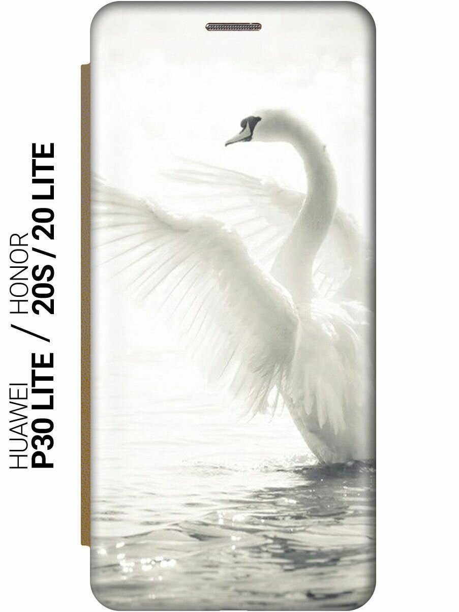 Чехол-книжка на Honor 20 Lite, 20s, Huawei P30 Lite, Хуавей П30 Лайт, Хонор 20 Лайт, 20s c принтом "Лебедь" золотистый информация: