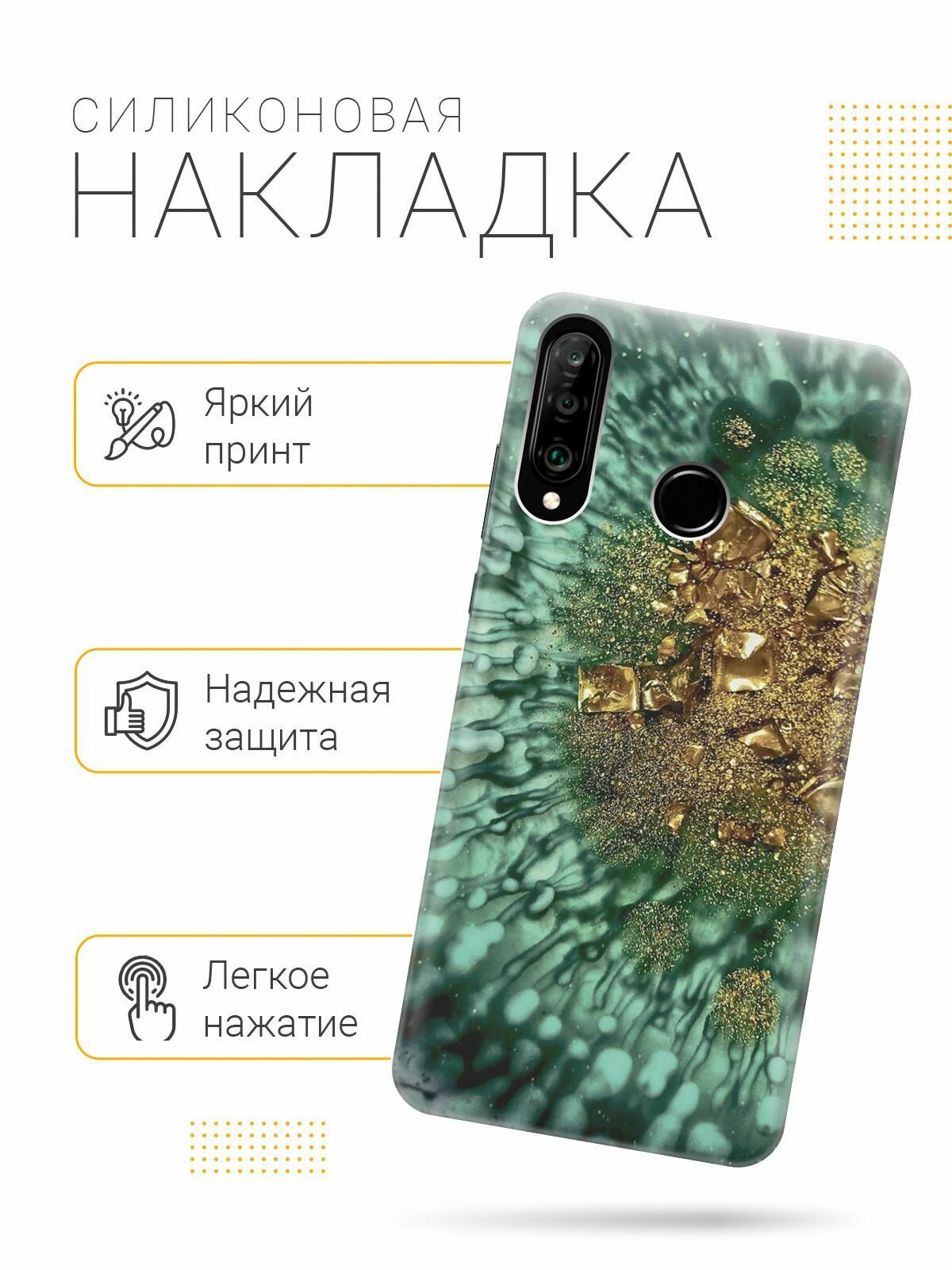 Силиконовый чехол на Huawei P30 Lite, Honor 20 Lite, Honor 20s, Хуавей П30 Лайт, Хонор 20 Лайт, Хонор 20s с принтом "Золото и изумрудные краски" информация: