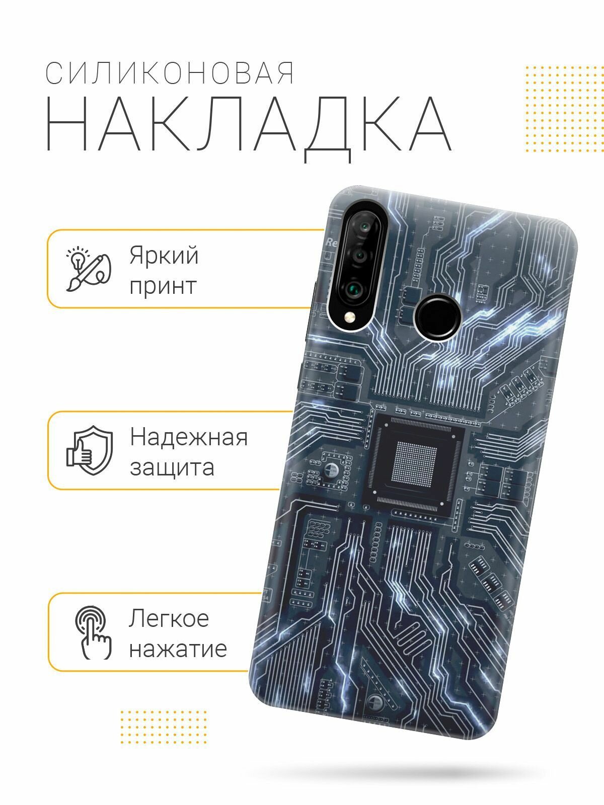 Отзывы на Силиконовый чехол на Huawei P30 Lite, Honor 20 Lite, Honor 20s, Хуавей П30 Лайт, Хонор 20 Лайт, Хонор 20s с принтом "Синяя микросхема"