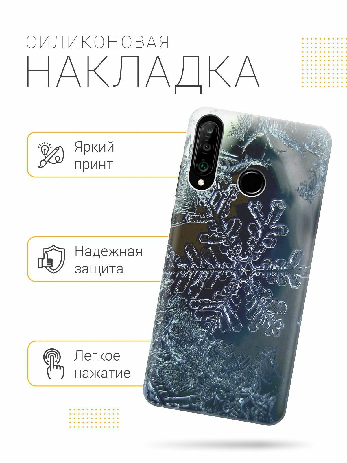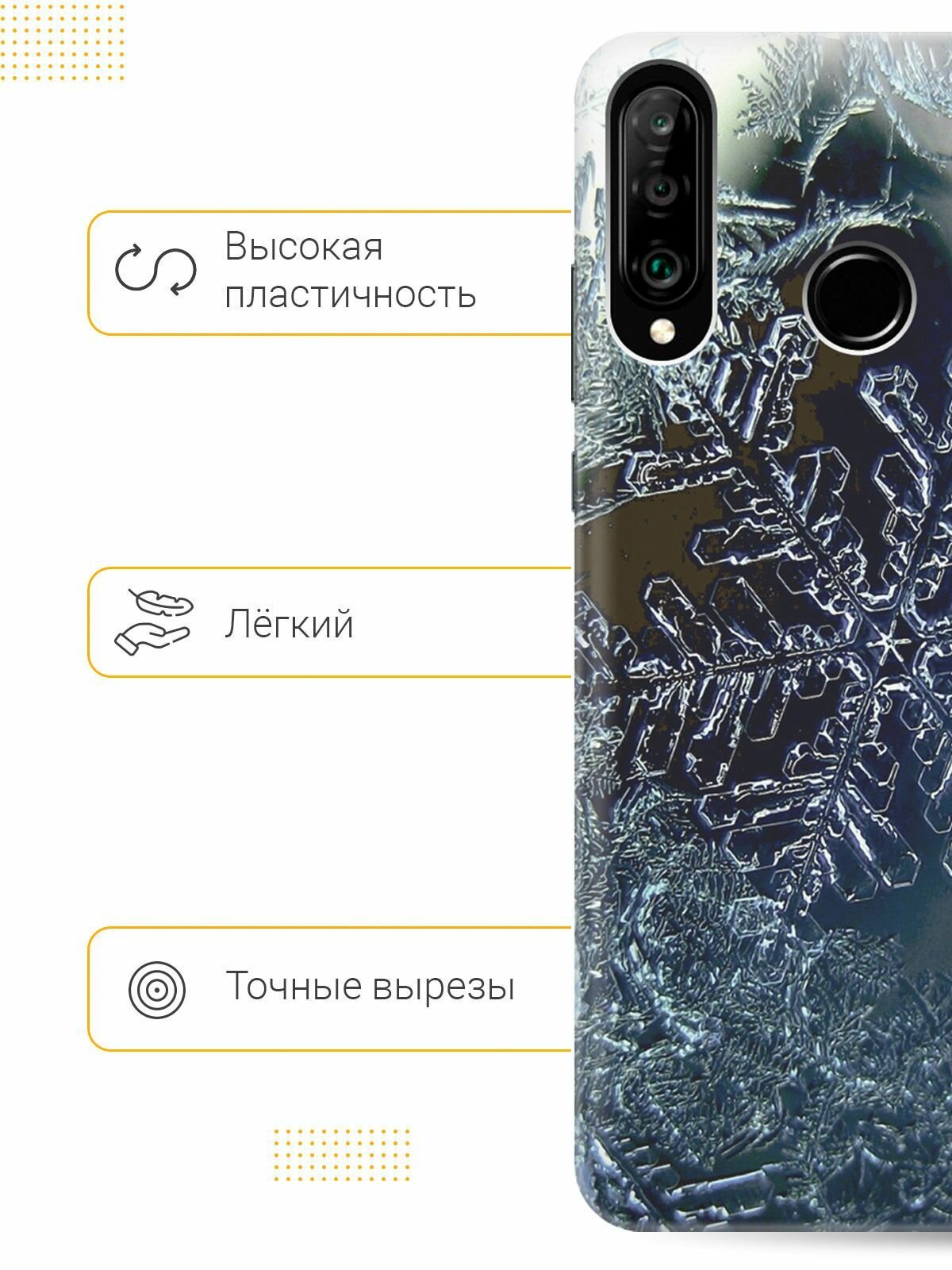 Отзывы на Силиконовый чехол на Huawei P30 Lite, Honor 20 Lite, Honor 20s, Хуавей П30 Лайт, Хонор 20 Лайт, Хонор 20s с принтом "Макро снежинка"