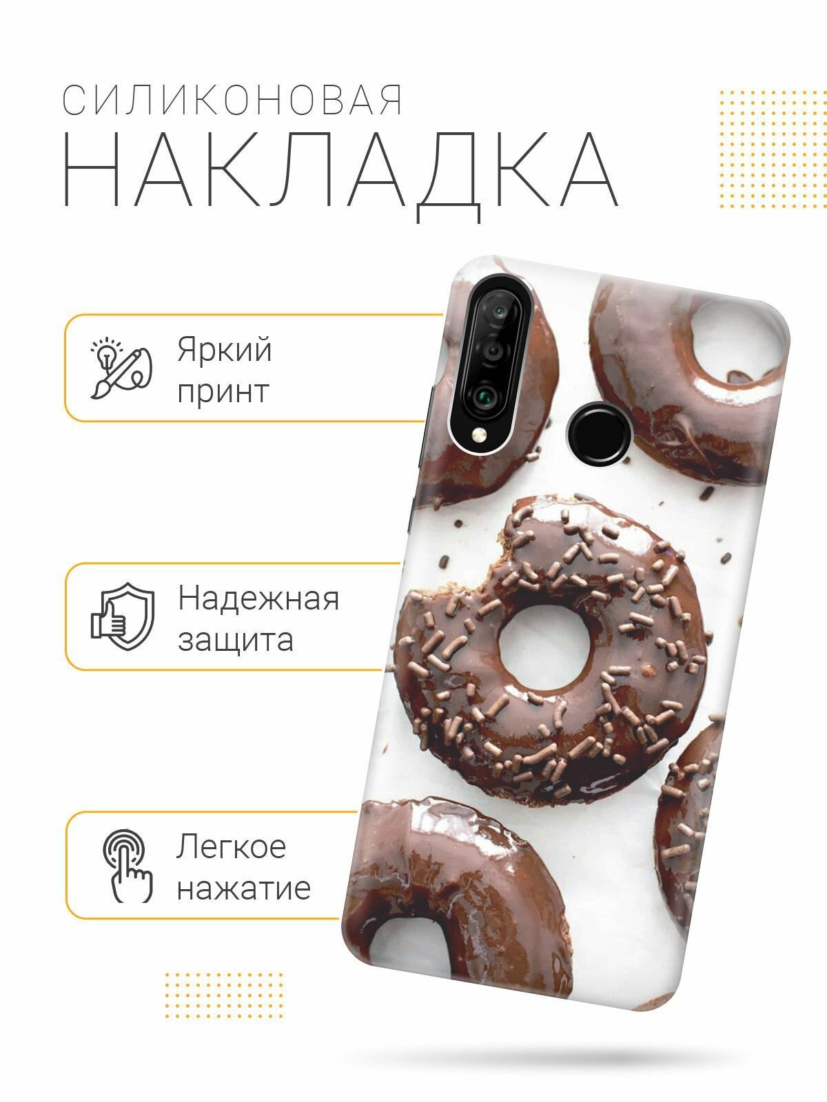 Отзывы на Чехол на Huawei P30 Lite, Honor 20 Lite, Honor 20s, Хуавей П30 Лайт, Хонор 20 Лайт, Хонор 20s с эффектом блеска "Пончики в шоколадной глазури"