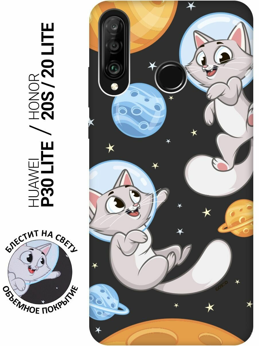 Матовый Soft Touch силиконовый чехол на Honor 20 Lite, 20s, Huawei P30 Lite, Хуавей П30 Лайт, Хонор 20 Лайт, 20s с 3D принтом "CosmoCats" черный информация: