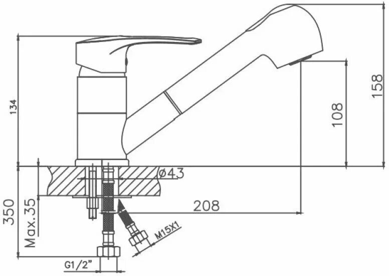 Смеситель для кухни 40к CN4766 CRON с выдвигающейся лейкой, хром