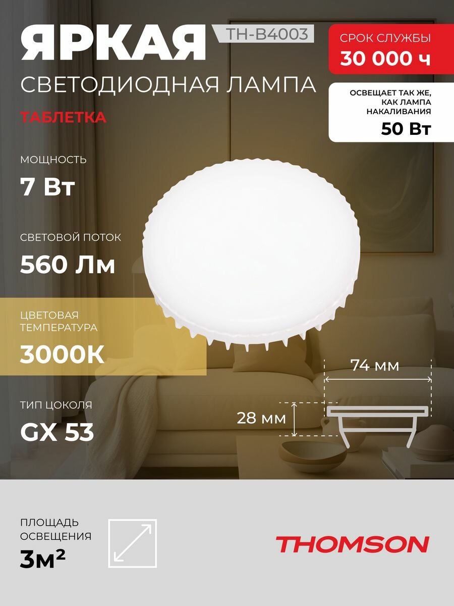 Лампа светодиодная Thomson GX53 220В 7Вт 3000K TH-B4003 информация:
