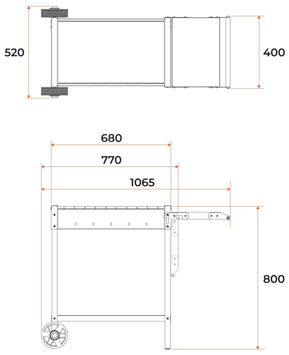 Мангал «MAH 202», 106.5×52×79.7 см, 2 мм, колёса, боковая полка