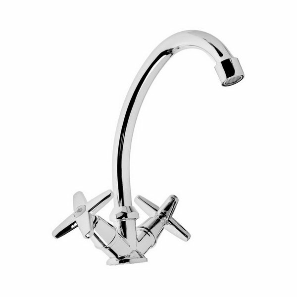 10 цен на Смеситель для кухни ZC2021, двухвентильный, кран-букса латунь 1/2", без подводки, хром