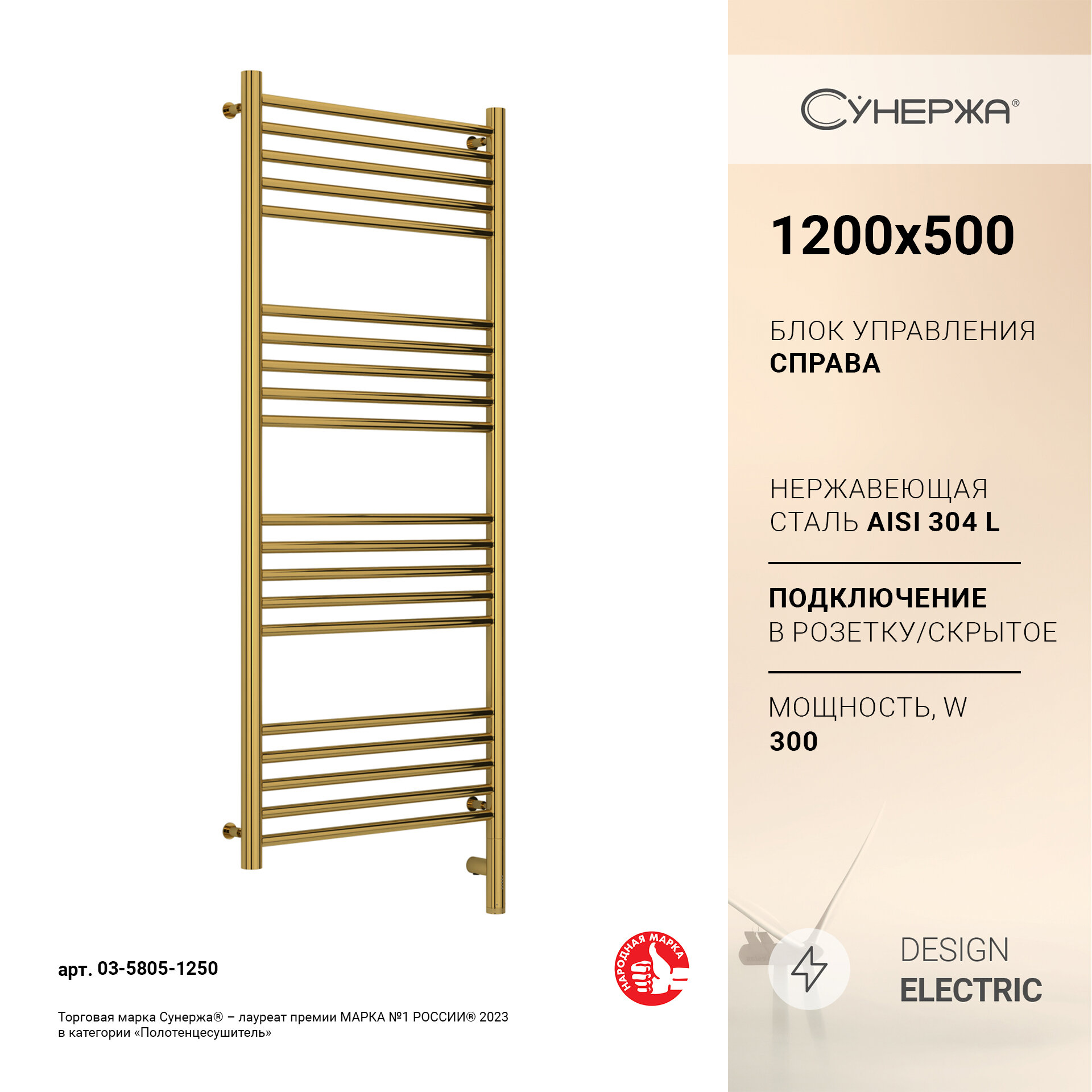 Электрический полотенцесушитель Сунержа Богема 3.0 прямая 1200х500 МЭМ правый золото информация: