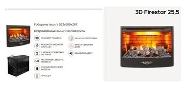 Камин RealFlame Raffaele 25,5 WT с очагом 3D Firestar 25,5 информация: