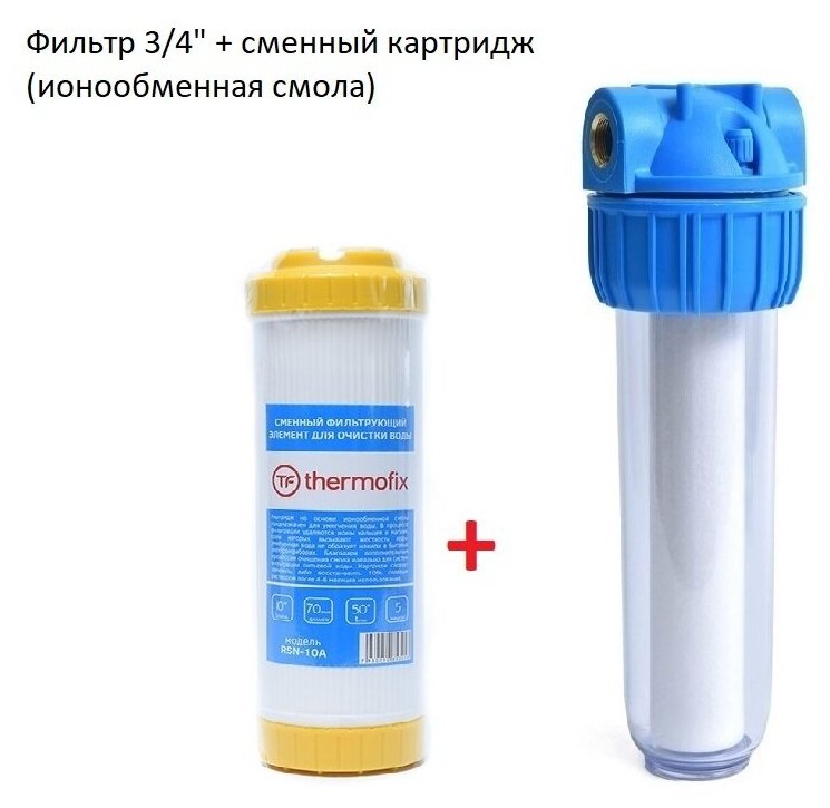 Фильтр для воды "Thermofix" комплект (3/4" колба с гайкой, 10", с картриджем) + запасной картридж ионообменная смола ,5 мкн) Slim Line информация: