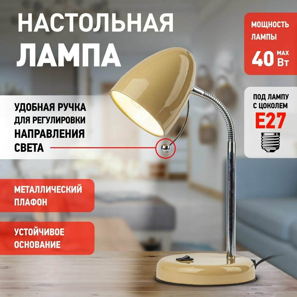 Лампа настольная E27 офисная для школьника ЭРА N-116-Е27-40W-BG хай-тек, ретро, лофт, бежевый информация: