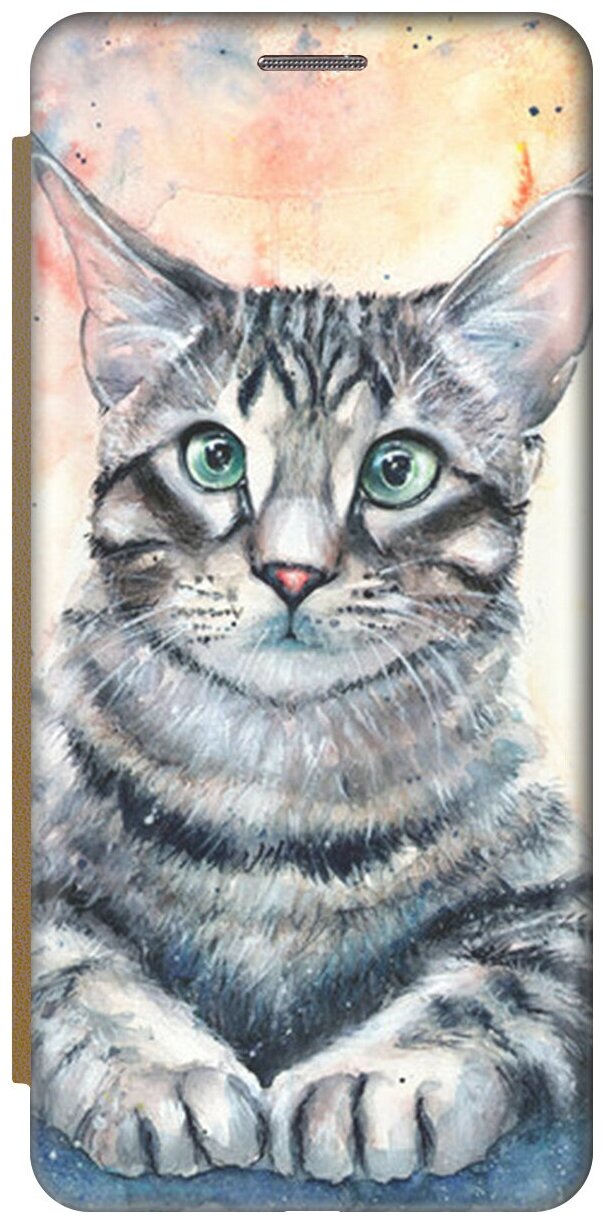 Отзывы на Чехол-книжка на Apple iPhone SE / 5s / 5 / Эпл Айфон 5 / 5с / СЕ с рисунком "Ушастый котик" золотой