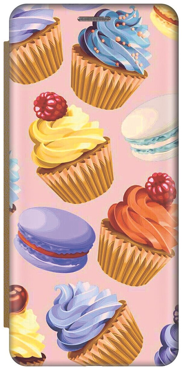 Отзывы на Чехол-книжка на Apple iPhone SE / 5s / 5 / Эпл Айфон 5 / 5с / СЕ с рисунком "Капкейки" золотой
