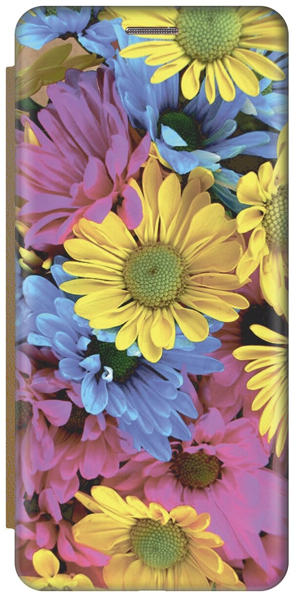 Чехол-книжка на Apple iPhone SE / 5s / 5 / Эпл Айфон 5 / 5с / СЕ с рисунком "Разноцветные ромашки" золотой информация: