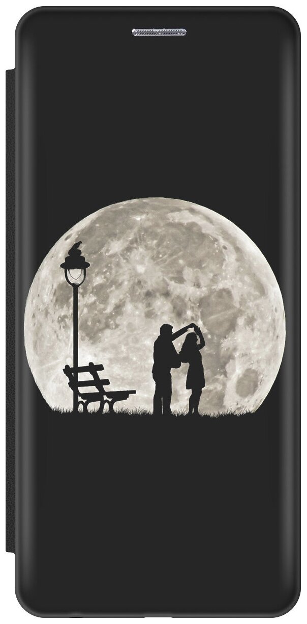 Чехол-книжка на Apple iPhone SE / 5s / 5 / Эпл Айфон 5 / 5с / СЕ с рисунком "Романтика под луной" черный информация: