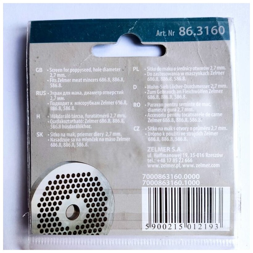 Решетка мелкая (отверстия 2,7 мм) для мясорубок ZELMER информация:
