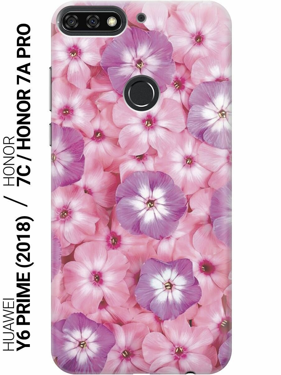 Силиконовый чехол на Honor 7C, 7A Pro, Huawei Y6 Prime (2018), Хуавей У6 Прайм 2018, Хонор 7А Про, 7С с принтом "Розовые и фиолетовые филаки" информация: