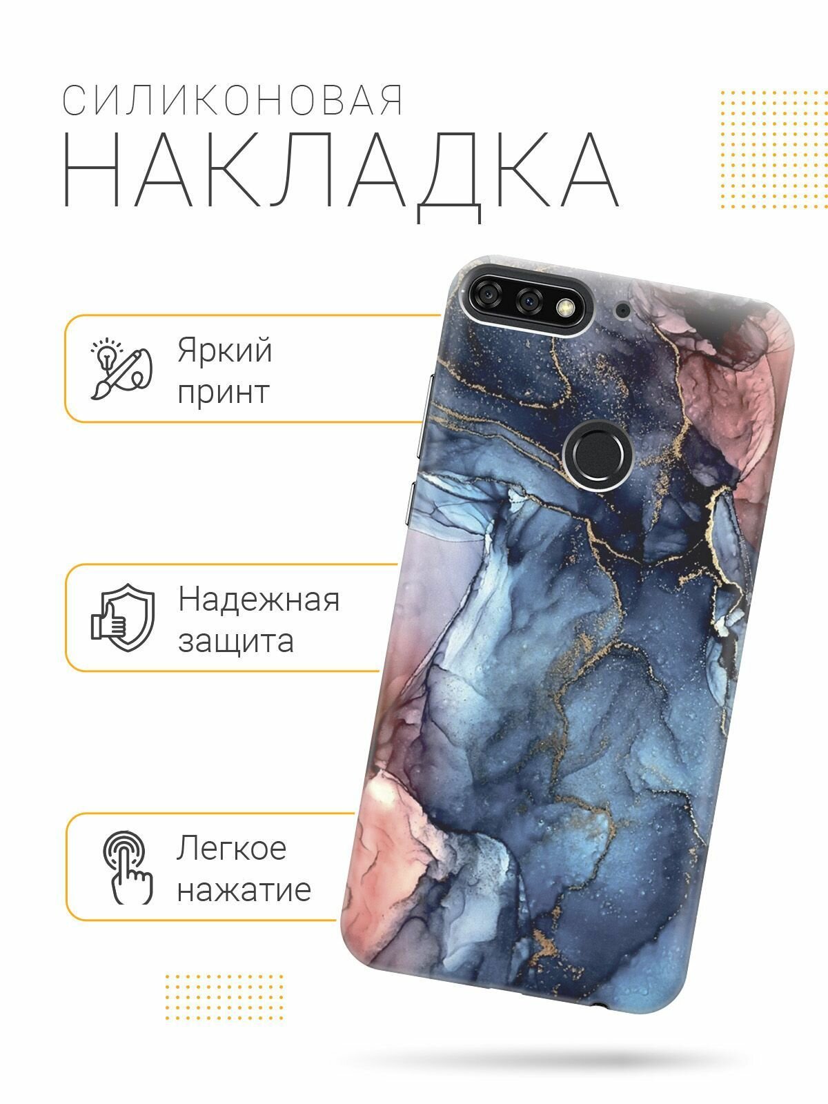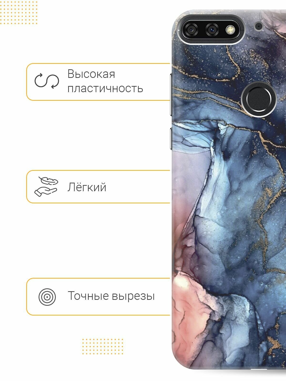 Силиконовый чехол на Honor 7C, 7A Pro, Huawei Y6 Prime (2018), Хуавей У6 Прайм 2018, Хонор 7А Про, 7С с принтом "Сине-розовый мрамор" информация: