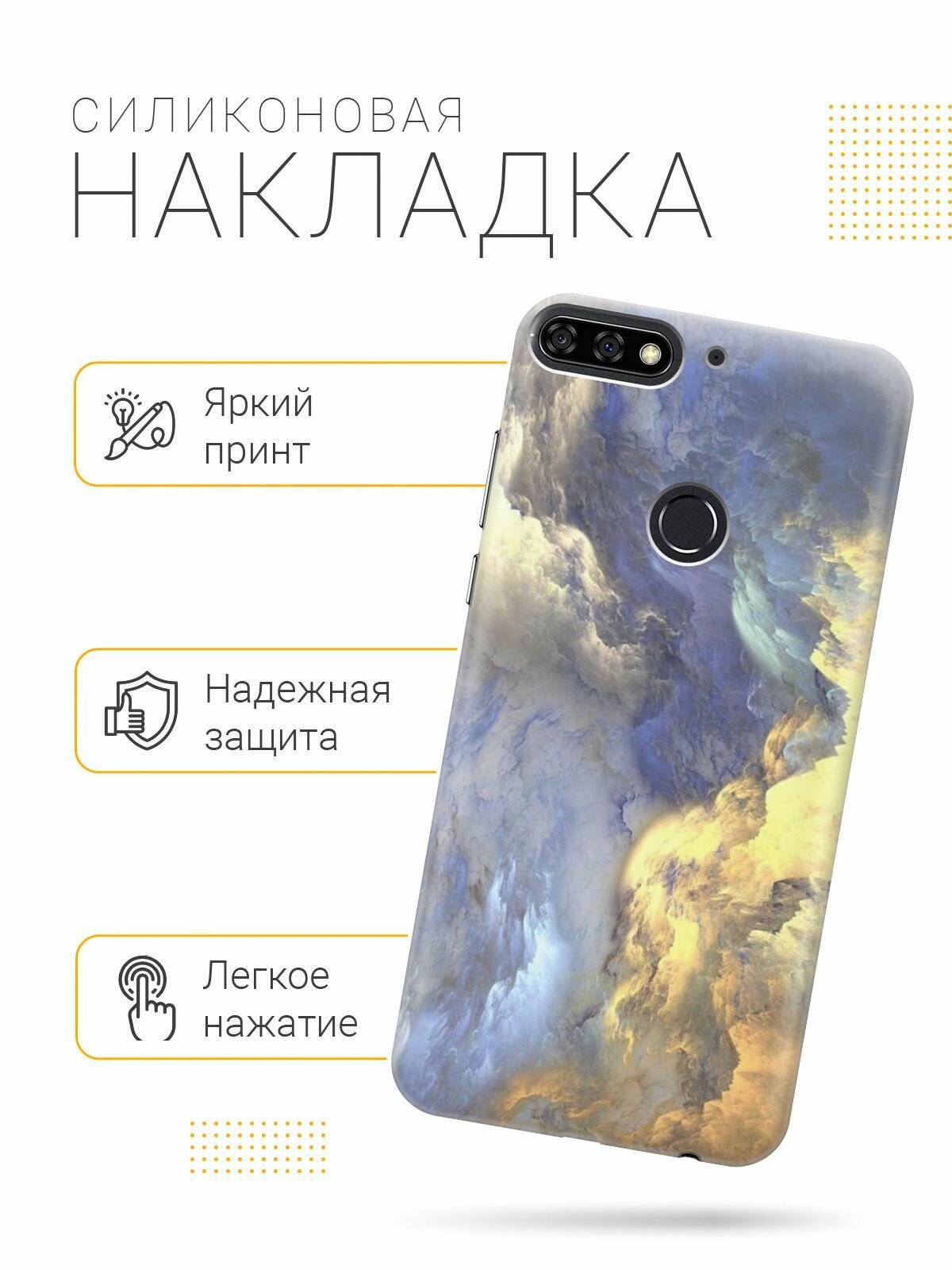 Силиконовый чехол на Huawei Y6 Prime (2018), Honor 7C, Honor 7A Pro, Хуавей У6 Прайм 2018, Хонор 7А Про, Хонор 7С с принтом "Желто-синие облака" информация: