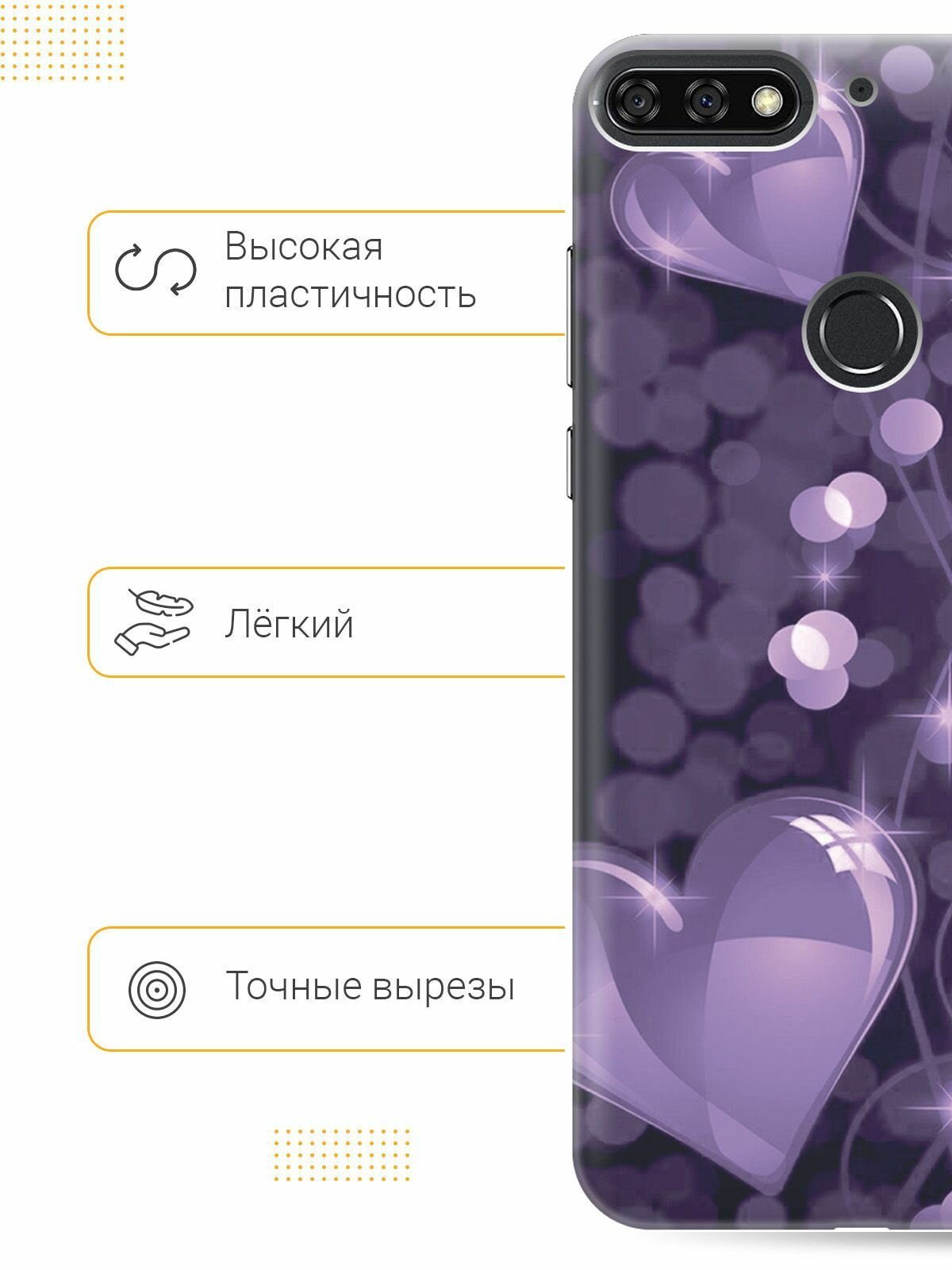 Силиконовый чехол на Honor 7C, 7A Pro, Huawei Y6 Prime (2018), Хуавей Хонор 7А Про с эффектом блеска "Любовь в фиолетовом цвете" информация: