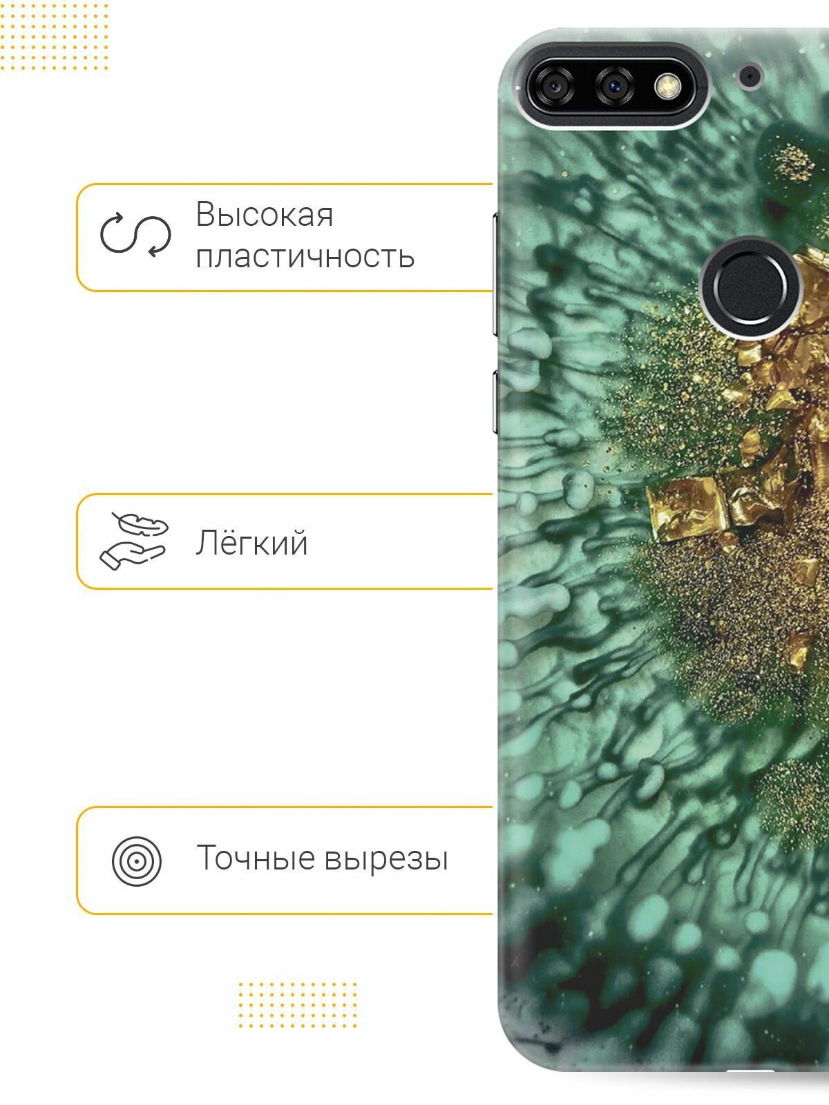 Отзывы на Силиконовый чехол на Honor 7C, 7A Pro, Huawei Y6 Prime (2018), Хуавей У6 Прайм 2018, Хонор 7А Про, 7С с принтом "Золото и изумрудные краски"