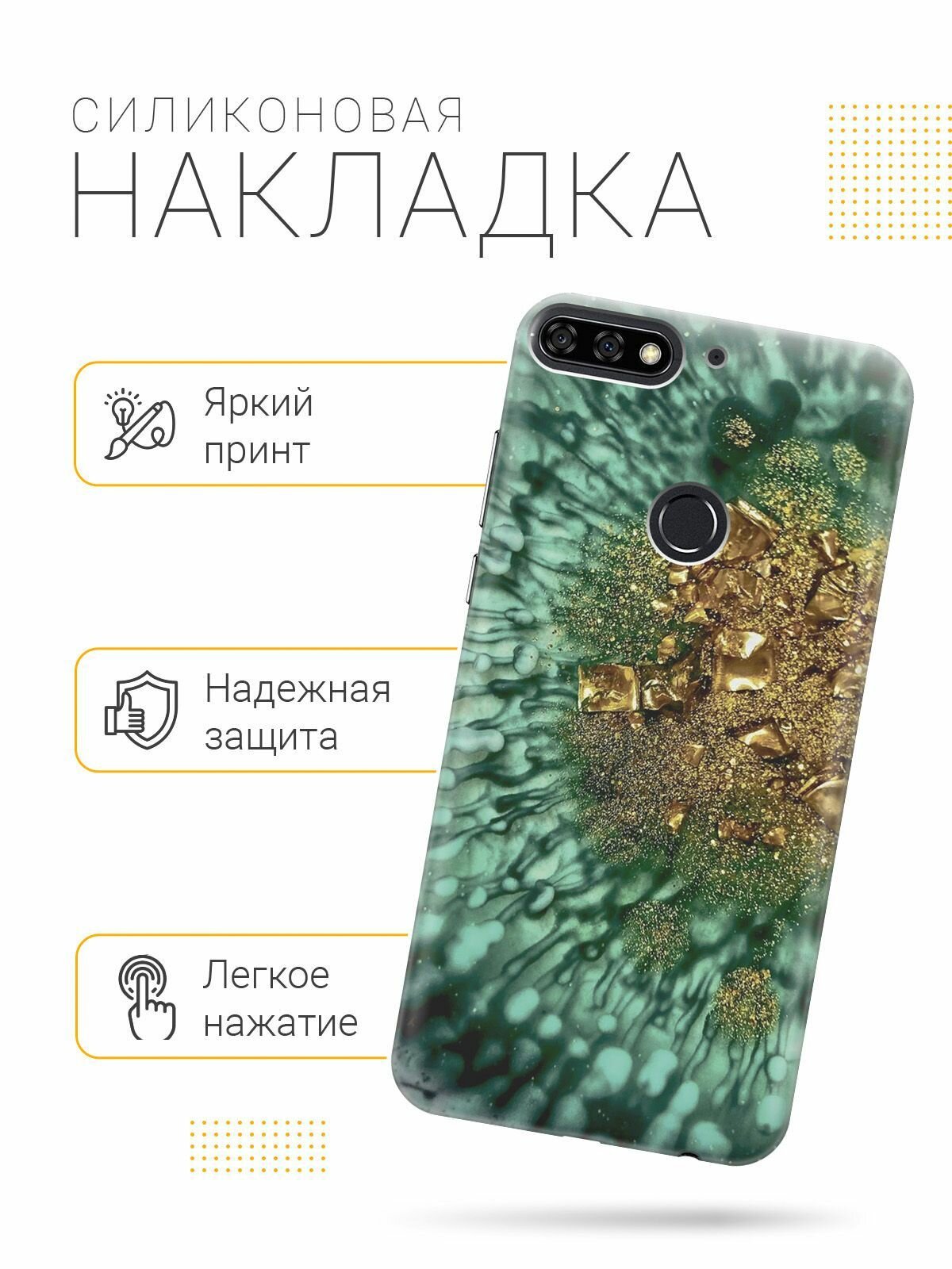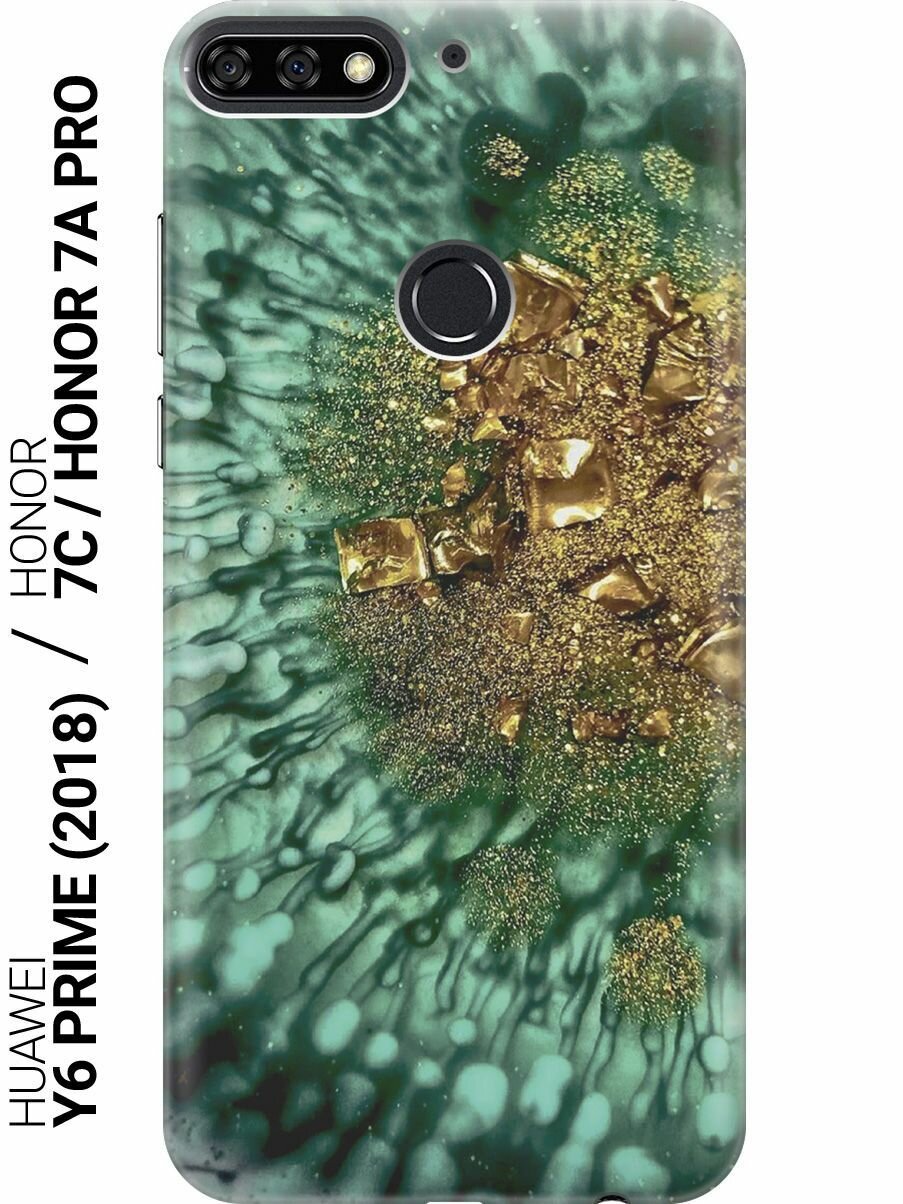Силиконовый чехол на Honor 7C, 7A Pro, Huawei Y6 Prime (2018), Хуавей У6 Прайм 2018, Хонор 7А Про, 7С с принтом "Золото и изумрудные краски" информация: