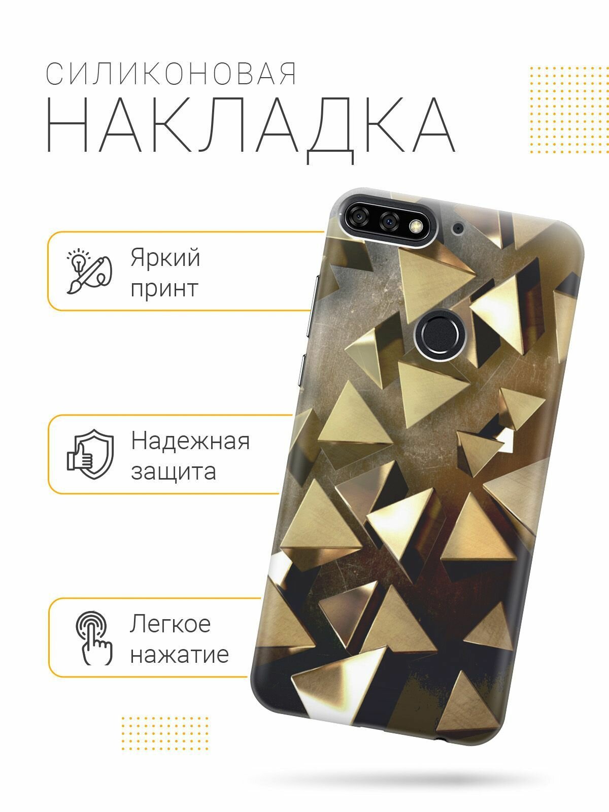 Силиконовый чехол на Honor 7C, 7A Pro, Huawei Y6 Prime (2018), Хуавей У6 Прайм 2018, Хонор 7А Про, 7С с эффектом блеска "Золотые фигуры" информация: